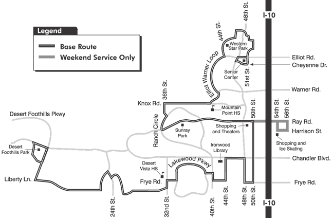 that ALEX is traveling. On major roads (Ray Rd, Chandler Boulevard, the Elliot/Warner Loop)